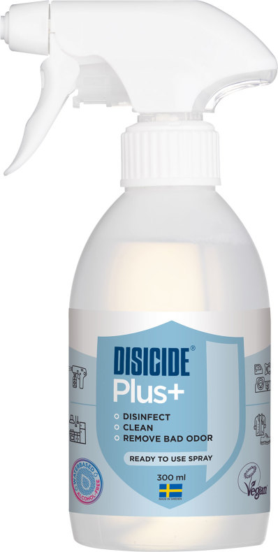 Disicide Plus+ works against different types of bacteria, viruses, fungi and removes bad odours. Do not mix with