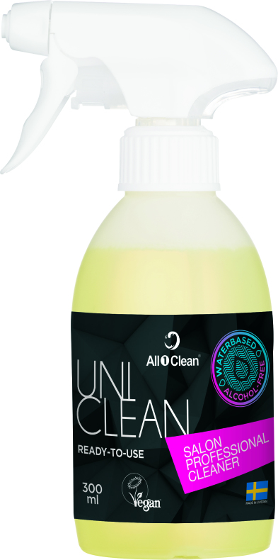 A ready-to-use-spray for salons. Uni Clean is the perfect solution for cleaning salon chairs, mirrors, dryers, flat irons, wood, metal, stone etc.