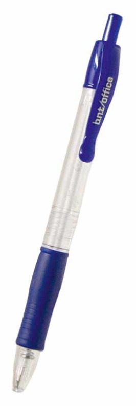 Tryckkulpenna med pennkropp och clips av plast. Med gummigrepp. Transparent pennkropp för enkel kontroll av bläcknivån. Medium spets.