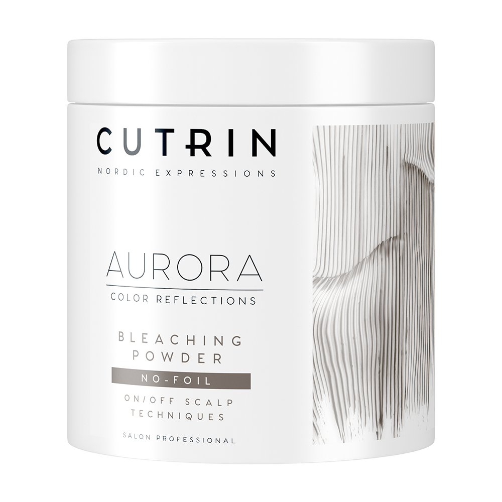 CUTRIN AURORA BLEACHING POWDER NO-FOIL är ett lerbaserat, oparfymerat och ammoniakfritt blekningspulver som är särskilt utvecklat för frihandstekniker.
