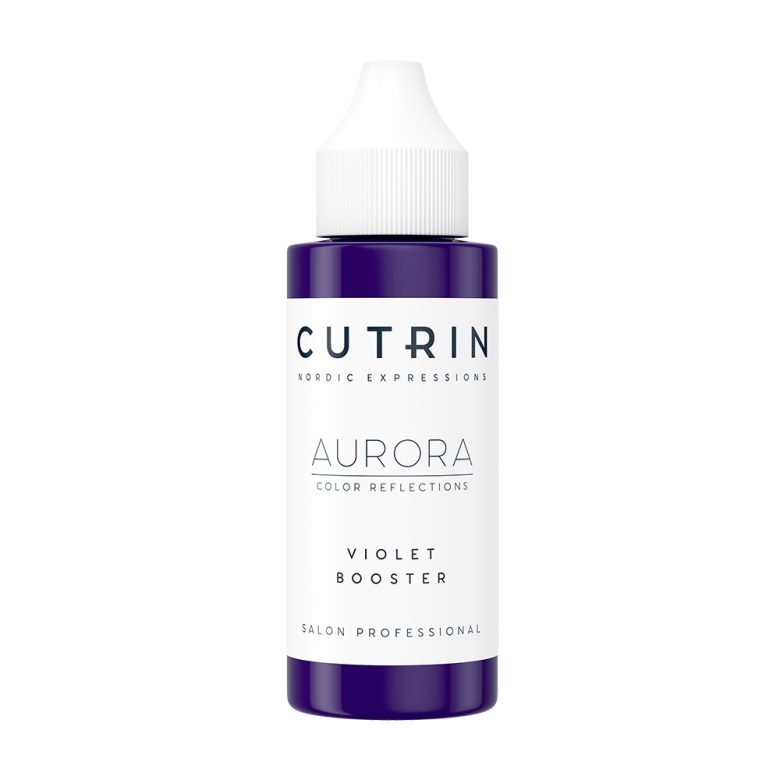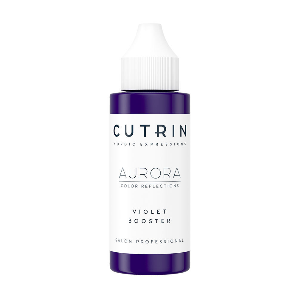 CUTRIN AURORA Violet Booster är en färgbooster som neutraliserar varma toner. Använd tillsammans med blekpulver eller hårfärg.