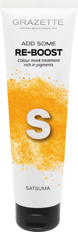 Grazette Add Some RE-BOOST Satsuma är en pigmentrik tonande färginpackning som ger din hårfärg nytt liv och glans. För alla som vill förstärka, förändra eller bevara sin färg. Tar även bort oönskade toner i håret. Färginpackningen är djupt vårdande, återfuktande och mjukgörande. Med avancerad pigmentteknologi och rik på vegetabiliskt protein.