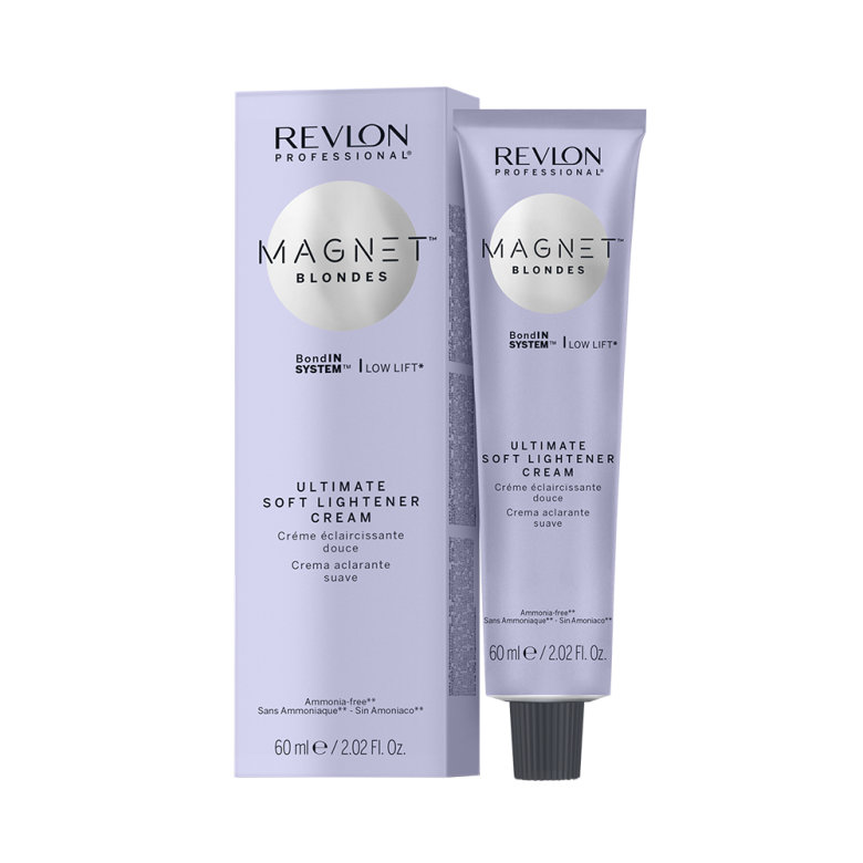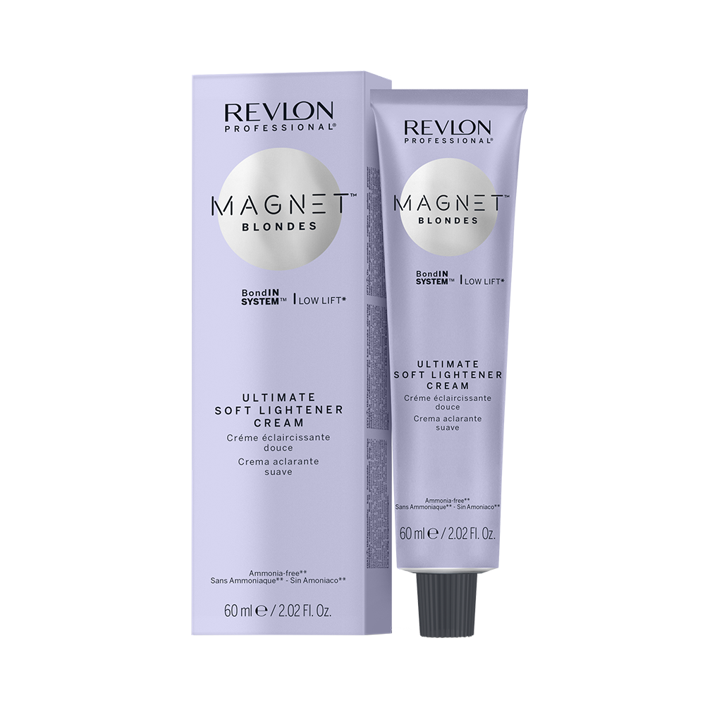 Magnet Blondes Ultimate Soft Lightener ljusar upp en halv till en nivå utan att ta fram varma toner. Avlägsnar oönskade varma undertoner för ett enhetligt blont resultat och minskar kontrasten mellan slingorna och den naturliga/färgade basen.