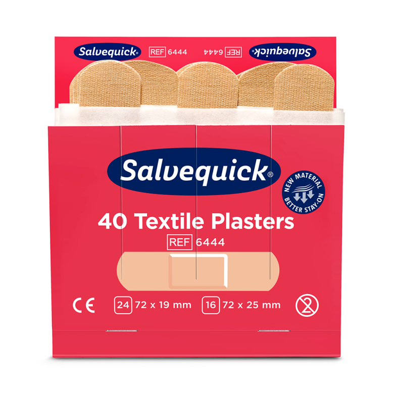 Salvequick Textilplåster är följsamma plåster av hög kvalitet. Plåstren är allergitestade. Flexibla och smidiga att använda, enkla att applicera. Salvequick Extra Stora är lite större plåster av hög kvalitet.