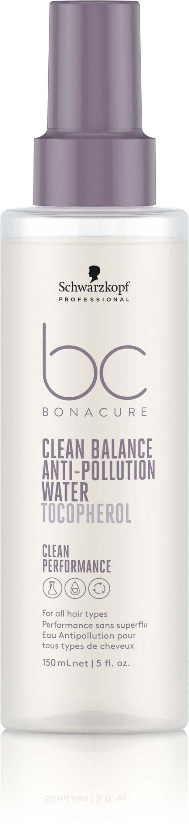 Clean Balance deep anti-pollution water. Skyddar mot föroreningar, skall ej sköljas ur och passar alla hårtyper. En ultralätt flytande sammansättning, speciellt framtagen med tokoferol som motverkar fria radikaler och skapar ett tunt lager på hårytan som skyddar mot föroreningar med extra värmeskydd, använd före föning eller efter styling. Upp till 24 timmars fräsch hårkänsla.