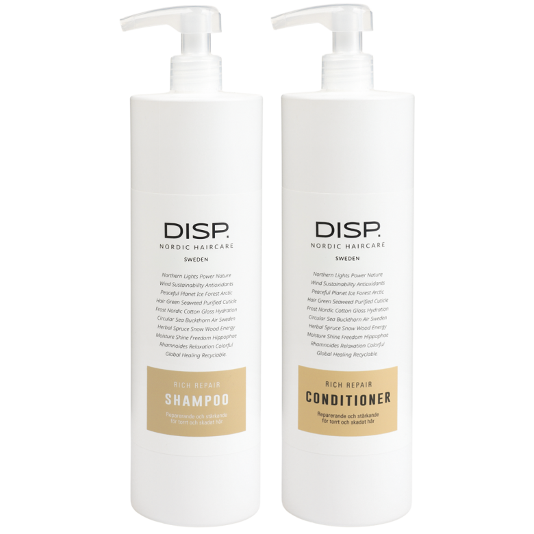Färdela i fuktigt hår, massera lätt, skölj noga och upprepa vid behov. Avsluta med disp® Rich Repair Conditioner.