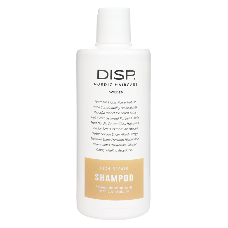 Färdela i fuktigt hår, massera lätt, skölj noga och upprepa vid behov. Avsluta med disp® Rich Repair Conditioner.