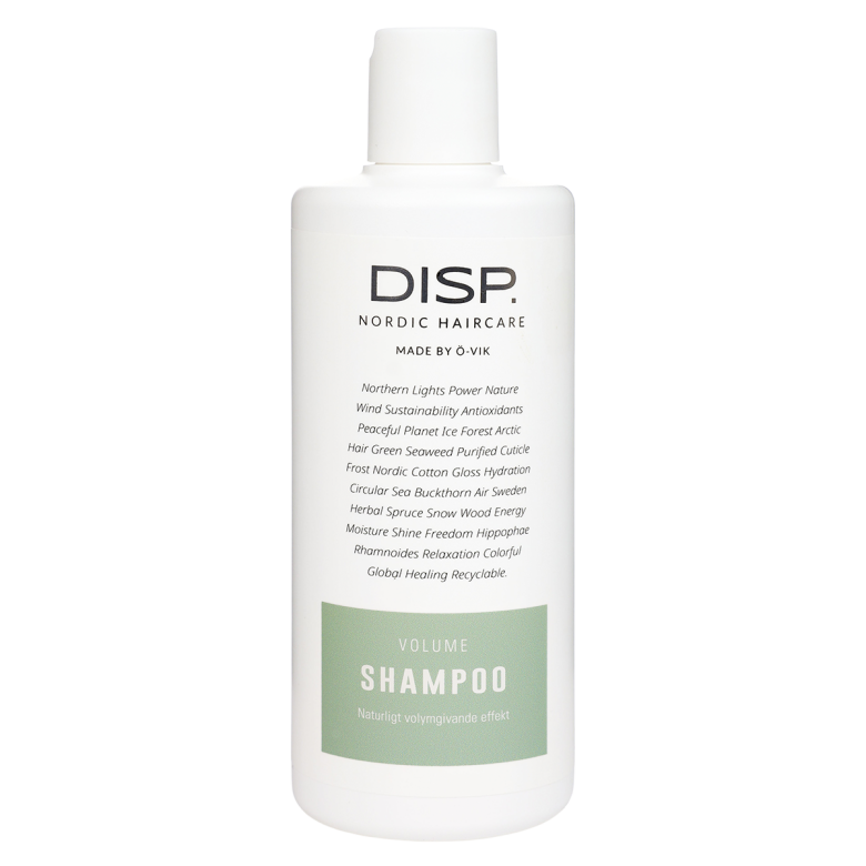Fördela i fuktigt hår, massera lätt. Skölj noga och upprepa vid behov. Avsluta med disp® Volume Conditioner.