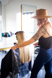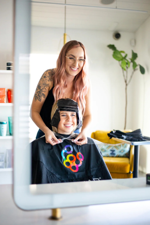 Backwards Bibs är engångsplastskydd som man hänger över kundens kappa för att skydda kunden, kappan och stolen från färg och blekning.