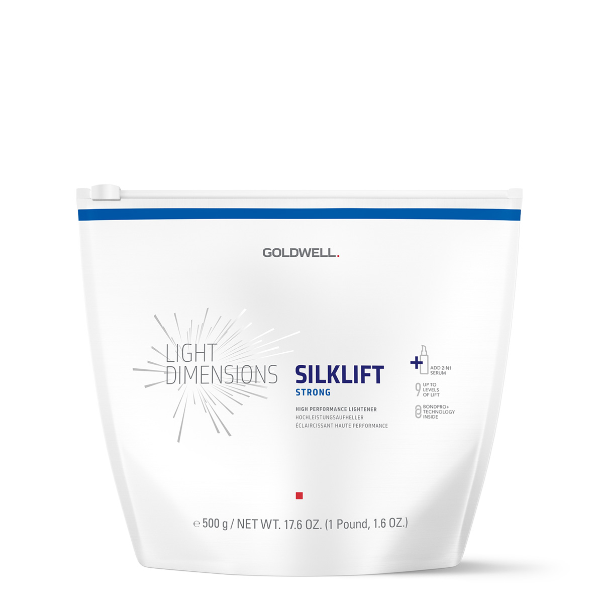Silklift Strong är en högpresterande och kraftfull blekning som ljusar upp till 9 steg. Blekningen passar för normalt till kraftigt hår samt för tekniker så som slingor, utväxt, blekningstvätt och frihandstekniker. Berikad med IntraLipid Technology och SilkProteinComplex som ger vård under blekningsprocessen genom att jämna ut skadade partier, för ett glansigt, mjukt och följsamt hår. Blekningen är även berikad med Anti-yellow-system som ger en effektiv uppljusning med rena och jämna resultat samt BondPro+ teknologi som gör blekningen skonsam samt skyddar och stärker hårfibrerna (när den används i kombination med BondPro+ steg 2).
