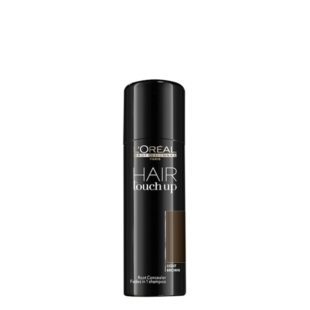 Hair Touch Up är en färgspray som täcker grått hår och får de gråa stråna att smälta in med en naturlig och osynlig finish. Passar alla hårtyper och finns i 6 olika färger för att kunna matcha alla hårfärger. Färgsprayen är lätt att applicera med hjälp av ett litet munstycke och tvättas ur med schampo. Light Brown är för ljusbrunt till mörkblont hår.