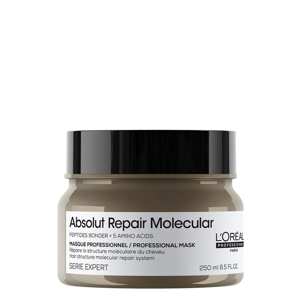 Absolut Repair Molecular Rinse-off Mask är en reparerande inpackning för skadade hårstrukturer, färgbehandlat, blekt och naturligt ofärgat hår. Denna koncentrerade inpackning är formulerad med Peptides Bonder + 5 aminosyror, reparerar 2 års skador i en användning* och återfyller hårets molekylära lager**. När håret skadas förstörs dess molekulära struktur som består av peptider. Håret bryts då av, blir mindre elastiskt och ser livlöst ut. De flesta peptider är för stora för att kunna tränga in i fibrerna, vilket förhindrar framtida skador. Håret blir 94% starkare***, får förbättrad elasticitet och rörelse**** samt 85% ökad släthet***. Den vårdande formulan har en silkeslen och krämig textur utan att tynga ner håret.