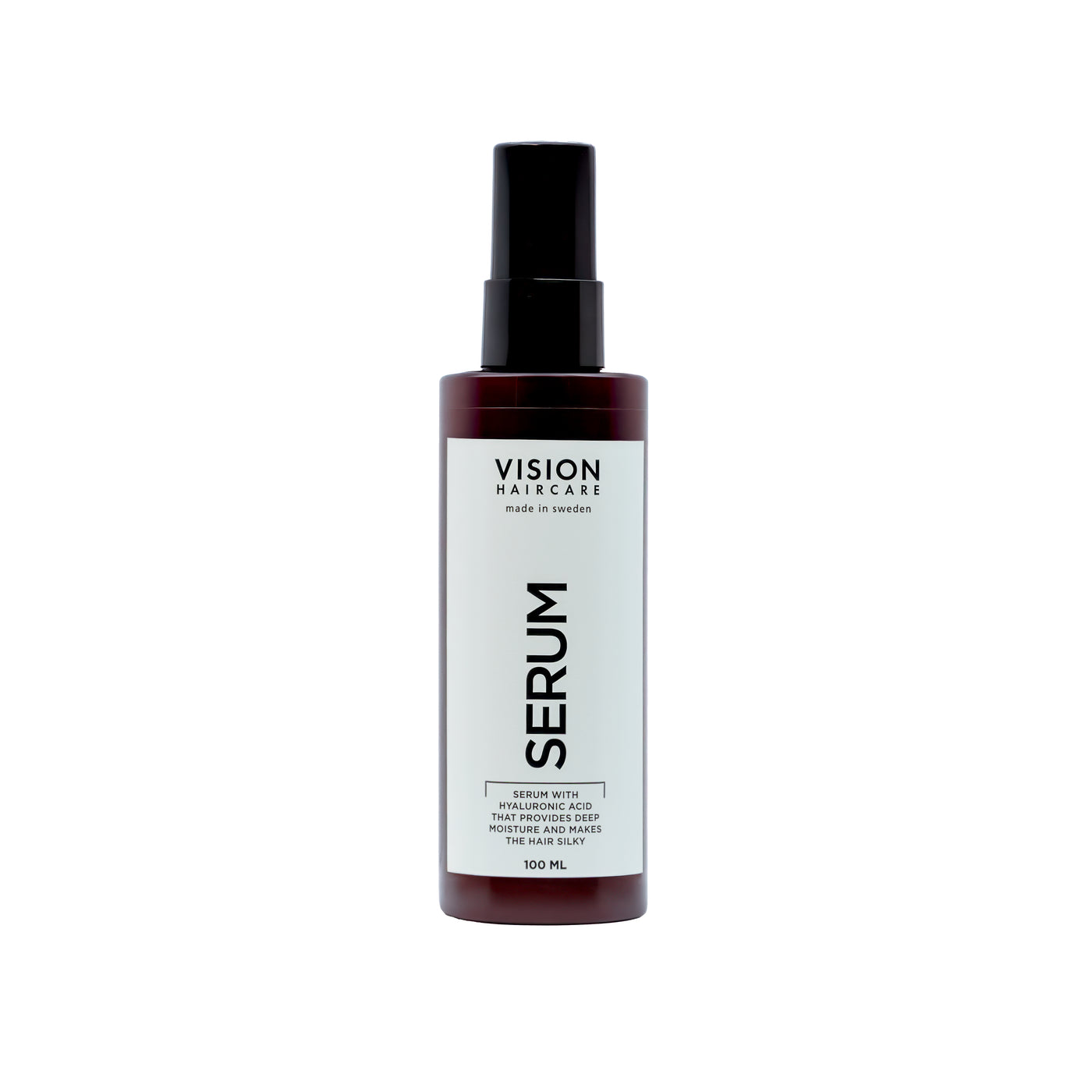 Vision Haircare Serum är en lättviktig och vårdande behandling som ger silkeslent hår med djup återfuktning och styrka. Berikat med hyaluronsyra hjälper det till att binda fukt, stärka hårstrået och ge en otrolig glans ? utan att tynga ner. Perfekt för alla hårtyper, särskilt torrt, skadat eller frissigt hår. 100ml.