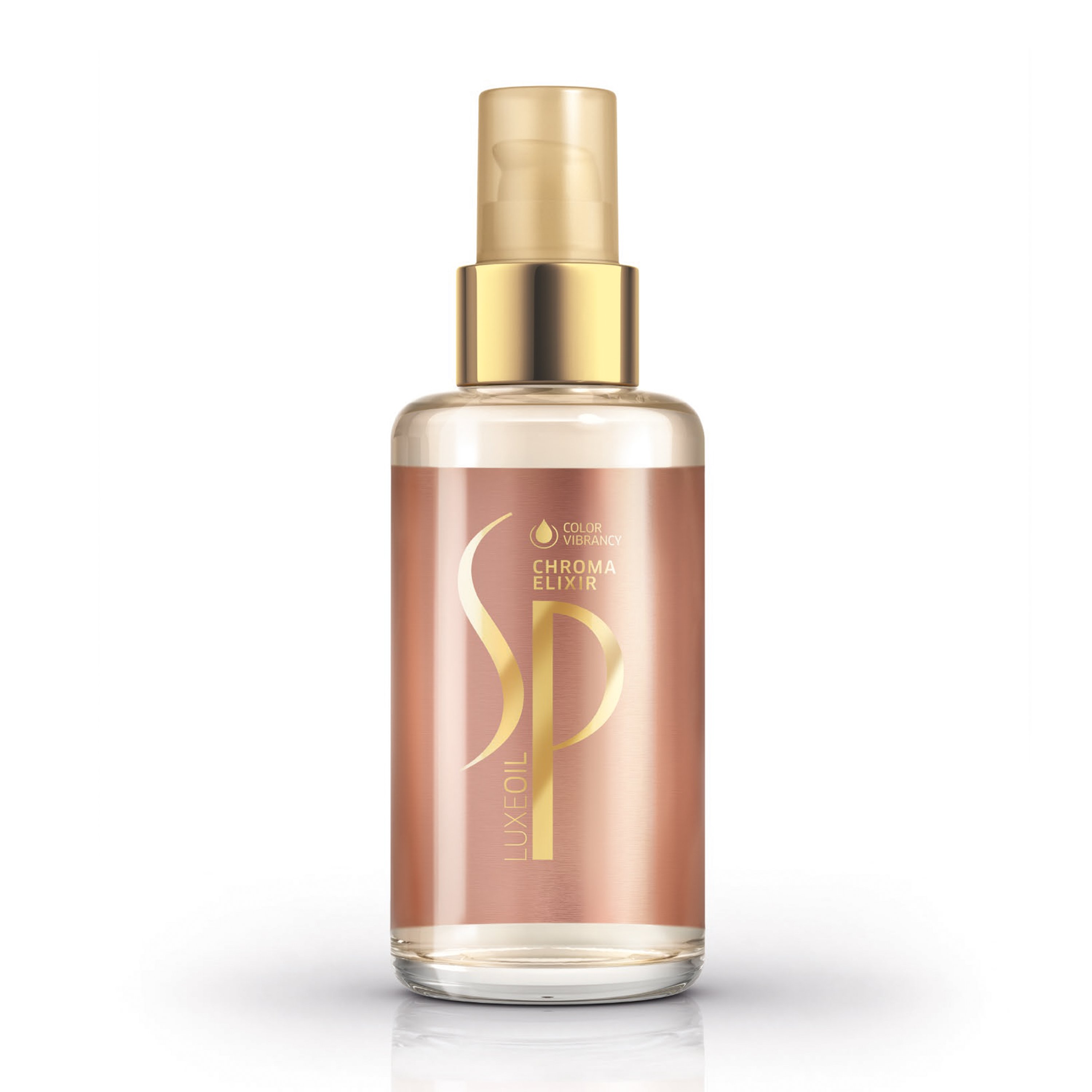 SP Chroma Elixir har en avancerad formula med UV-filter och en blandning av olika oljor för förbättrad färglyster. SP Chroma Elixir är utvecklad för personer som vill ha en bättre livslängd på färgat hår samt ökad vitalitet, näring, keratin-struktur och lyster. Med SP Chroma Elixir kan du få upp till 86 % mer färgreflektioner* i håret samtidigt som den kapslar in hårets fibrer och ger silkeslen finish och näring. Du kan använda Chroma Elixir i både fuktigt och torrt hår. Addera ett par droppar till topparna och längderna i fuktigt hår innan föning eller efter föning för att uppnå omedelbar färglyster och silkeslent resultat. Dessutom får håret UV-skydd som både hjälper till att skydda hårets fibrer från UV-strålning samt skyddar färgat hår så att det inte bleks av solens strålar.