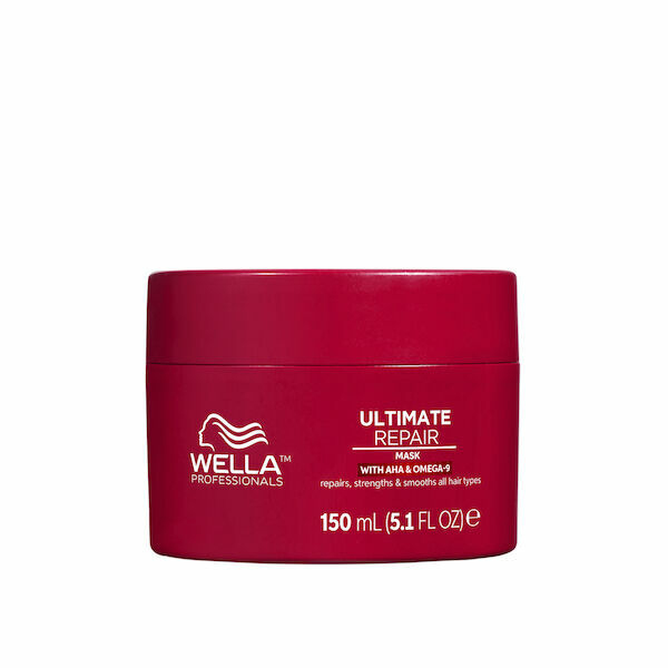 Wella Professionals Ultimate Repair Mask är en intensivt lugnande och reparerande hårinpackning med alfahydroxisyra (AHA) och omega 9 som synligt reparerar och stärker skadat hår. Denna lätta inpackning reparerar och riktar in sig på skadat hår som orsakats av värmeverktyg, UV-strålning, blekning, hårband och löshår. Dessutom minskar behandlingen frissighet, reder ut håret och gör det upp till 6 gånger enklare att kamma*, vilket gör håret starkare, slätare och friskare.