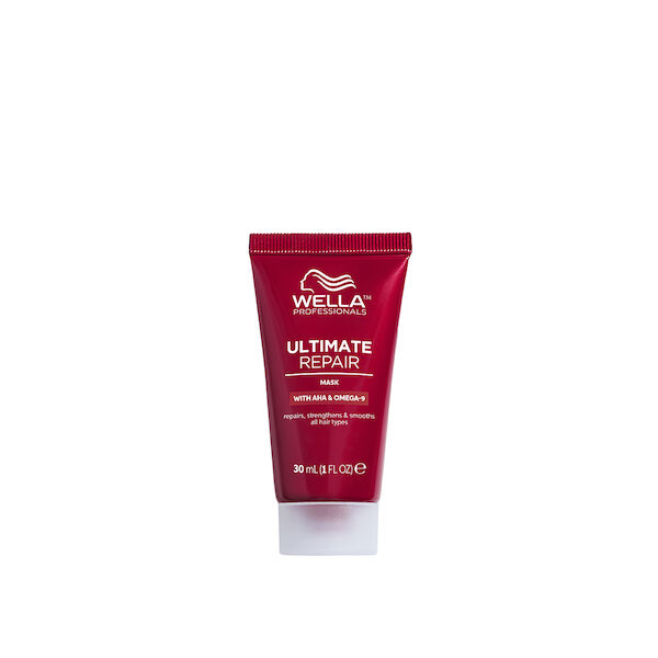 Wella Professionals Ultimate Repair Mask är en intensivt lugnande och reparerande hårinpackning med alfahydroxisyra (AHA) och omega 9 som synligt reparerar och stärker skadat hår. Denna lätta inpackning reparerar och riktar in sig på skadat hår som orsakats av värmeverktyg, UV-strålning, blekning, hårband och löshår. Dessutom minskar behandlingen frissighet, reder ut håret och gör det upp till 6 gånger enklare att kamma*, vilket gör håret starkare, slätare och friskare.