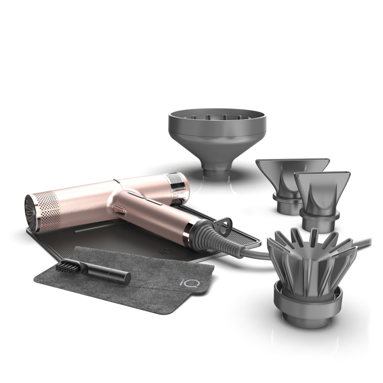 Säg hej till nya GA.MA iQ2! Fönen är lika lätt och kompakt som den vanliga GA.MA iQ, men med en snabbare motor och funktioner som stand-by-teknologi, specialdesignade munstycken och automatisk rengöring.