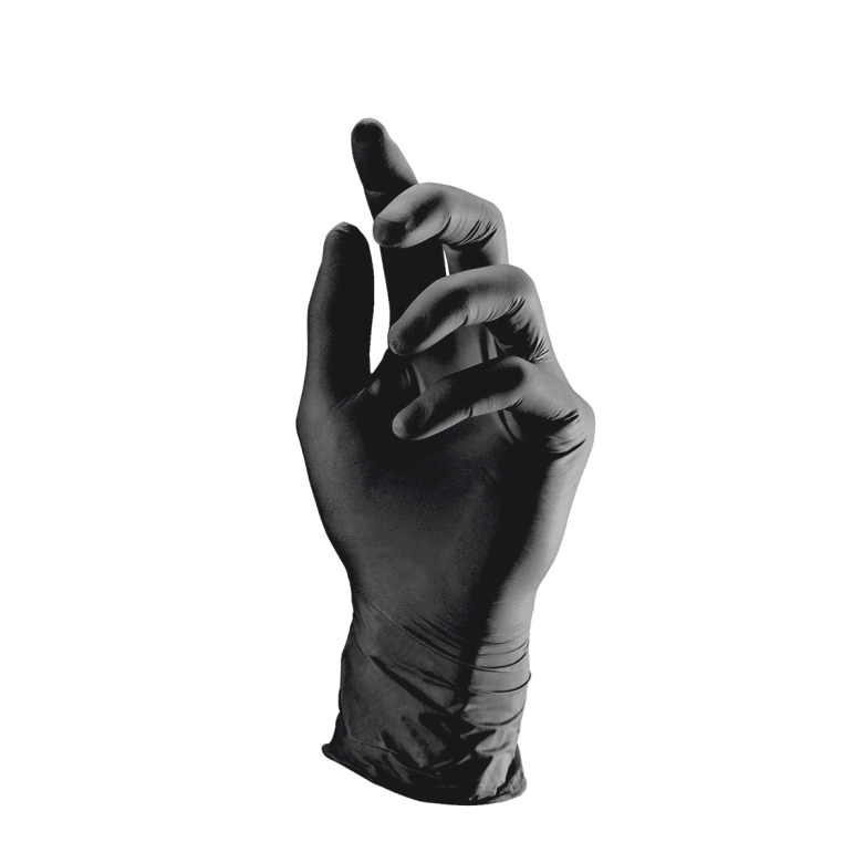 Svarta puderfria nitrilhandskar med en texturerad yta på fingerspetsarna för ett bättre grepp.