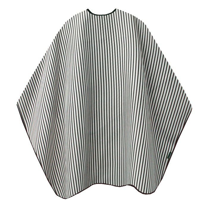 Barber Cape är en klippkappa i 100% polyester med barberarens klassiska ränder. Stängning med 6 st tryckknappar, mått 145 x 170 cm.